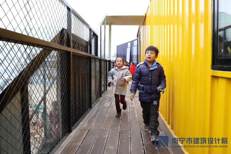 項目采用了集裝箱房屋的形式,由10個集裝箱構(gòu)成,通過堆積木的形式,根據(jù)學生兒童所需的建筑風格和功能需求,將集裝箱橫豎排列,形成一定的退臺和露臺空間,為孩子們提供更多共享活動空間。