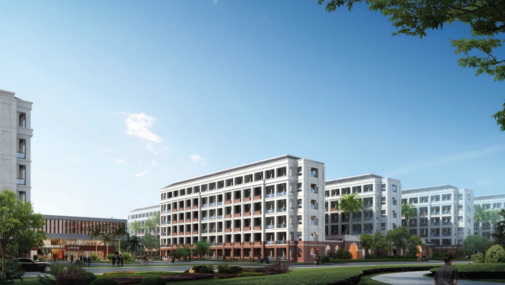 設計理念:本項目規(guī)劃結合基地影響因素、以及師范類院校特色,從校園結構、功能、交通、綠地水系、開發(fā)空間和細部設計等方面提出六大規(guī)劃特色,遵循學?!暗虏挪⒂?、知行合一”的校訓,規(guī)劃將校園布局為“求知為心,實踐為翼”的三大功能區(qū),設計分別南北貫穿三大功能區(qū)的三條縱軸,并通過一條東西向橫軸串聯互動,形成知行合一的校園規(guī)劃結構。校園建筑立面形態(tài)采取經典學院風與現代風格相結合的策略,校園主軸建筑形象傳承經典,濱水、局部節(jié)點采用現代建筑突顯學校與時俱進、開拓創(chuàng)新的人文情懷和進取精神。