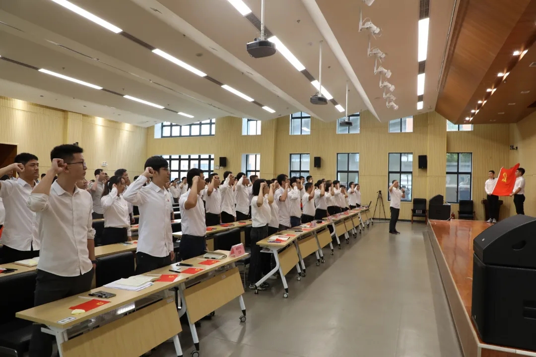 奮斗百年路,啟航新征程。當天上午,公司全體黨員面向黨旗,舉起右拳,再一次重溫入黨誓詞?!拔抑驹讣尤胫袊伯a(chǎn)黨,擁護黨的綱領,遵守黨的章程……”鏗鏘有力的宣誓聲在會場回蕩。