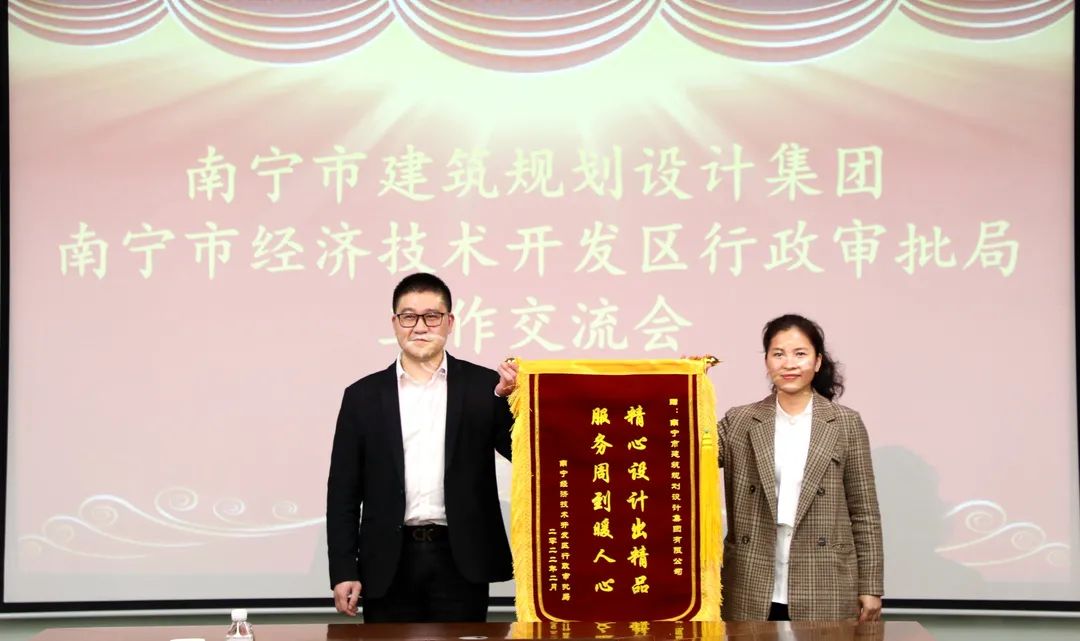 近日,南寧經(jīng)濟技術(shù)開發(fā)區(qū)行政審批局局長何建匯率部門相關(guān)負責人一行蒞臨我集團公司交流指導,對我集團在配合南寧經(jīng)開區(qū)開展“拿地即開工”活動中的服務(wù)表現(xiàn)給予了充分肯定,并向我集團贈送錦旗以示鼓勵。