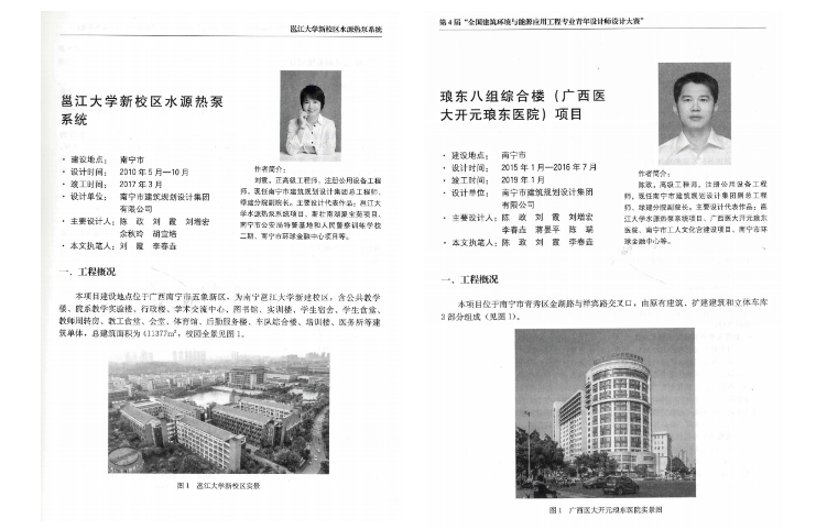 其中,集團綠色建筑設計研究分院李春垚入選第2批中國勘察設計協(xié)會建筑環(huán)境與能源應用專業(yè)青年人才庫人員名單。集團設計項目“邕江大學新校區(qū)水源熱泵系統(tǒng)”和“瑯東八組綜合樓(廣西醫(yī)大開元瑯東醫(yī)院)”獲《全國勘察設計建筑環(huán)境與能源應用工程專業(yè)優(yōu)秀工程3》收錄并出版發(fā)行。