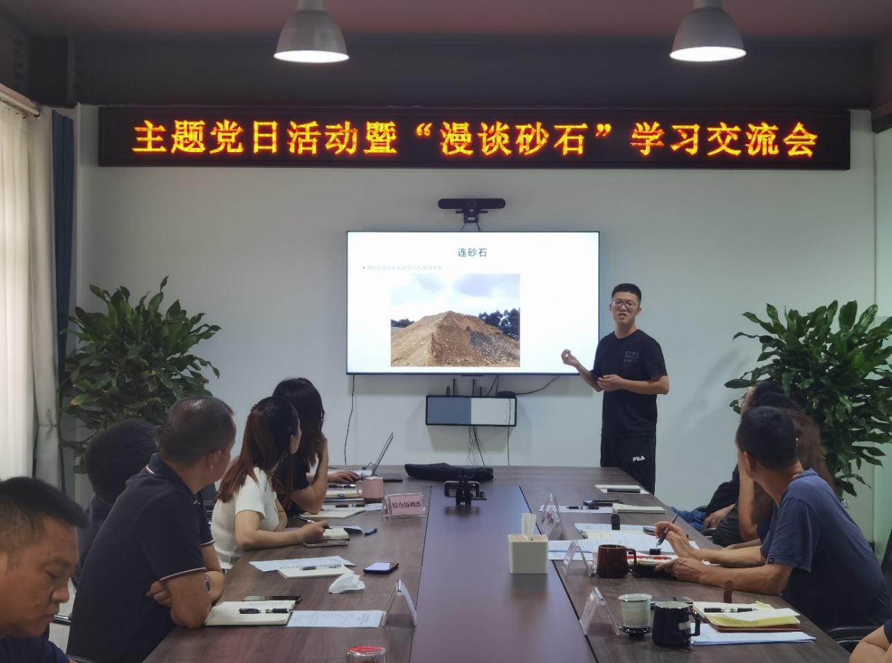 2022年9月5日,黨支部在公司會(huì)議室開展主題黨日活動(dòng)—“漫談砂石”交流學(xué)習(xí)會(huì),支部全體黨員、積極分子和群眾參加。