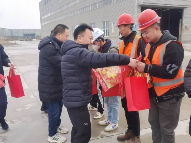 在慰問(wèn)過(guò)程中,葉鵬與一線職工親切交談,詳細(xì)了解一線職工的工作狀況及身體情況,并將新春祝福送到每位職工手上,對(duì)一線職工的辛勤付出和努力表示感謝。同時(shí)還囑咐一線職工在保證項(xiàng)目安全生產(chǎn)的基礎(chǔ)上,要注意勞逸結(jié)合。